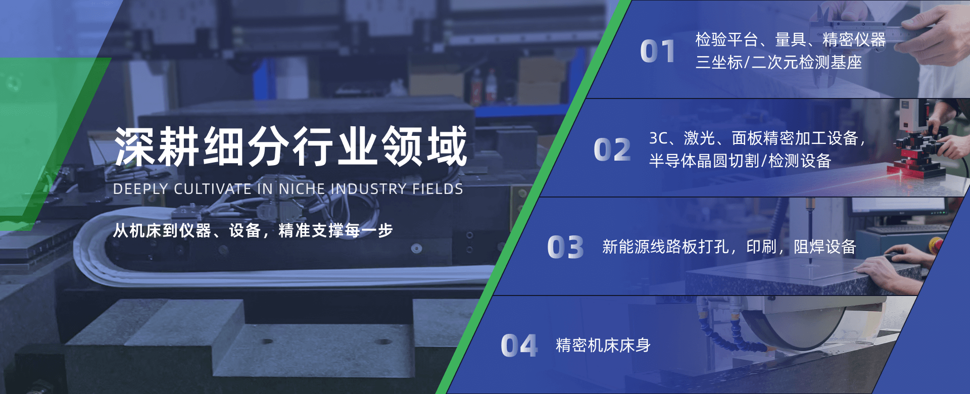 產(chǎn)品廣泛應用于3C、激光、半導體、醫(yī)療、新能源、檢測設(shè)備、直驅(qū)運動平臺、機床、非標自動化設(shè)備等領(lǐng)域。自成立以來,公司以“客戶價值為核心,卓越品質(zhì)為基石,奮力鑄就中國第一”的企業(yè)高度,依托先進設(shè)備、一流技術(shù)與高素質(zhì)團隊,在石材加工與開發(fā)應用領(lǐng)域持續(xù)創(chuàng)新,以穩(wěn)定的產(chǎn)品質(zhì)量贏得客戶廣泛信任與贊譽。